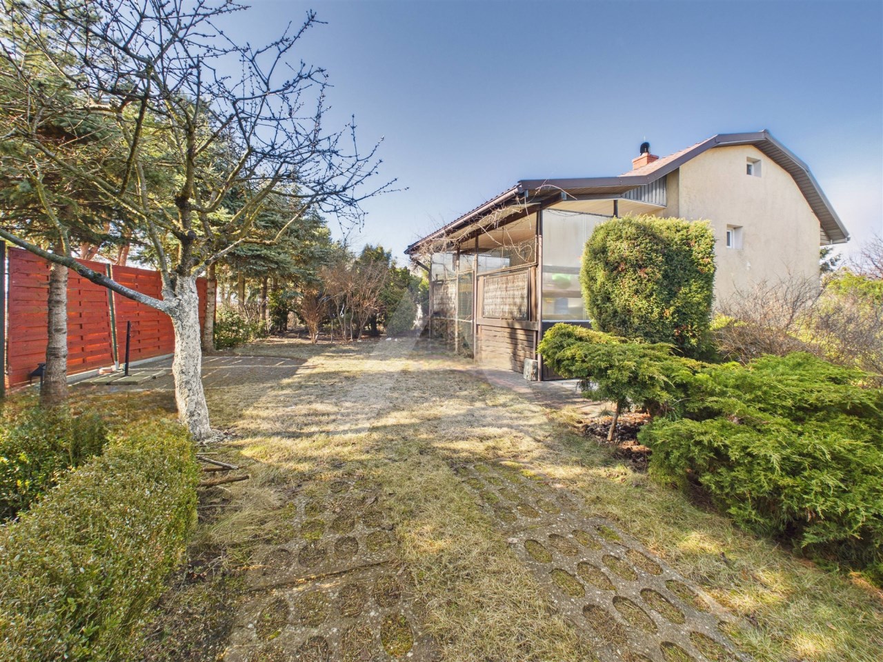 Działka jest w całości ogrodzona i bardzo zadbana. Znajdują się na niej liczne nasadzenia, w tym drzewa owocowe i rośliny ozdobne. Do dyspozycji właściciela jest również duży taras oraz możliwość wjazdu samochodem na teren działki.