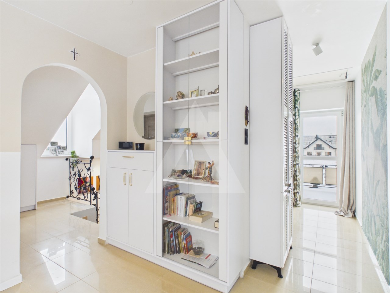 Dodatkowym atutem jest garderoba na półpiętrze- inteligentne rozwiązanie pozwalające zaoszczędzić miejsce i zwiększyć funkcjonalność wnętrza.