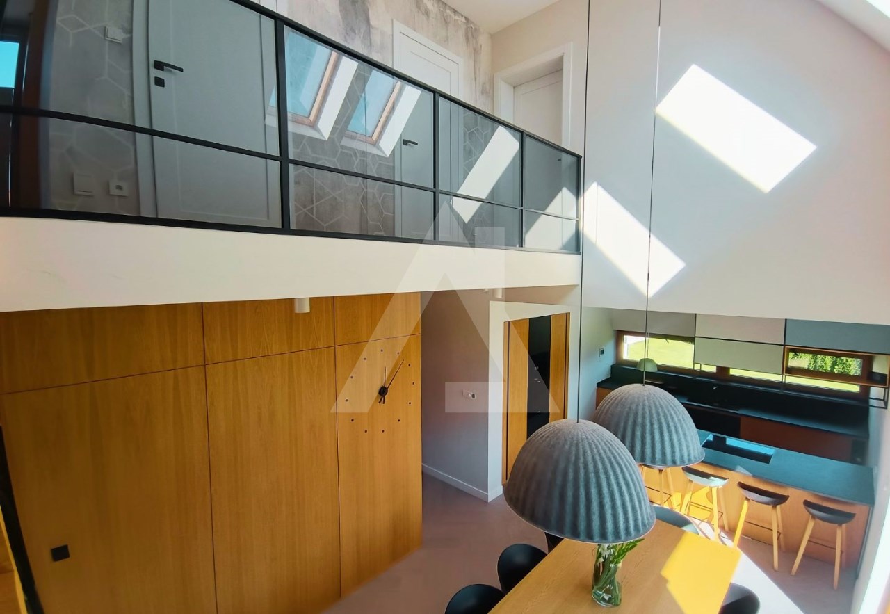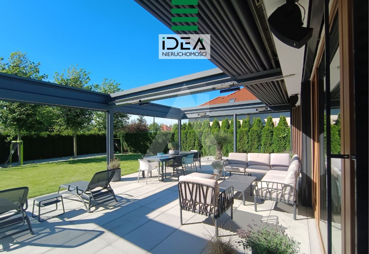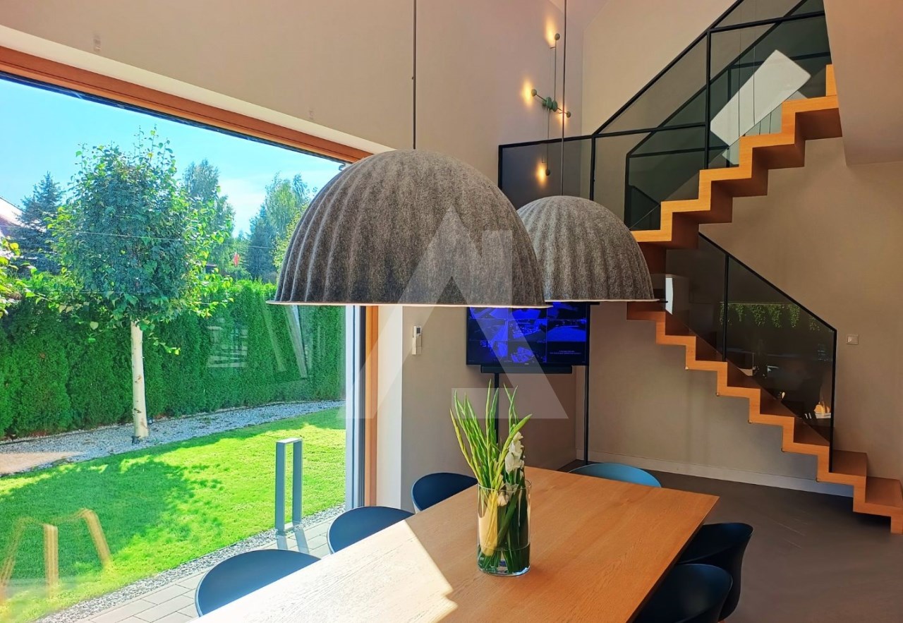 Nieruchomość wyposażona w inteligentny system Grenton, który umożliwia sterowanie oświetleniem, żaluzjami, bramami, pergolami oraz monitoringiem.