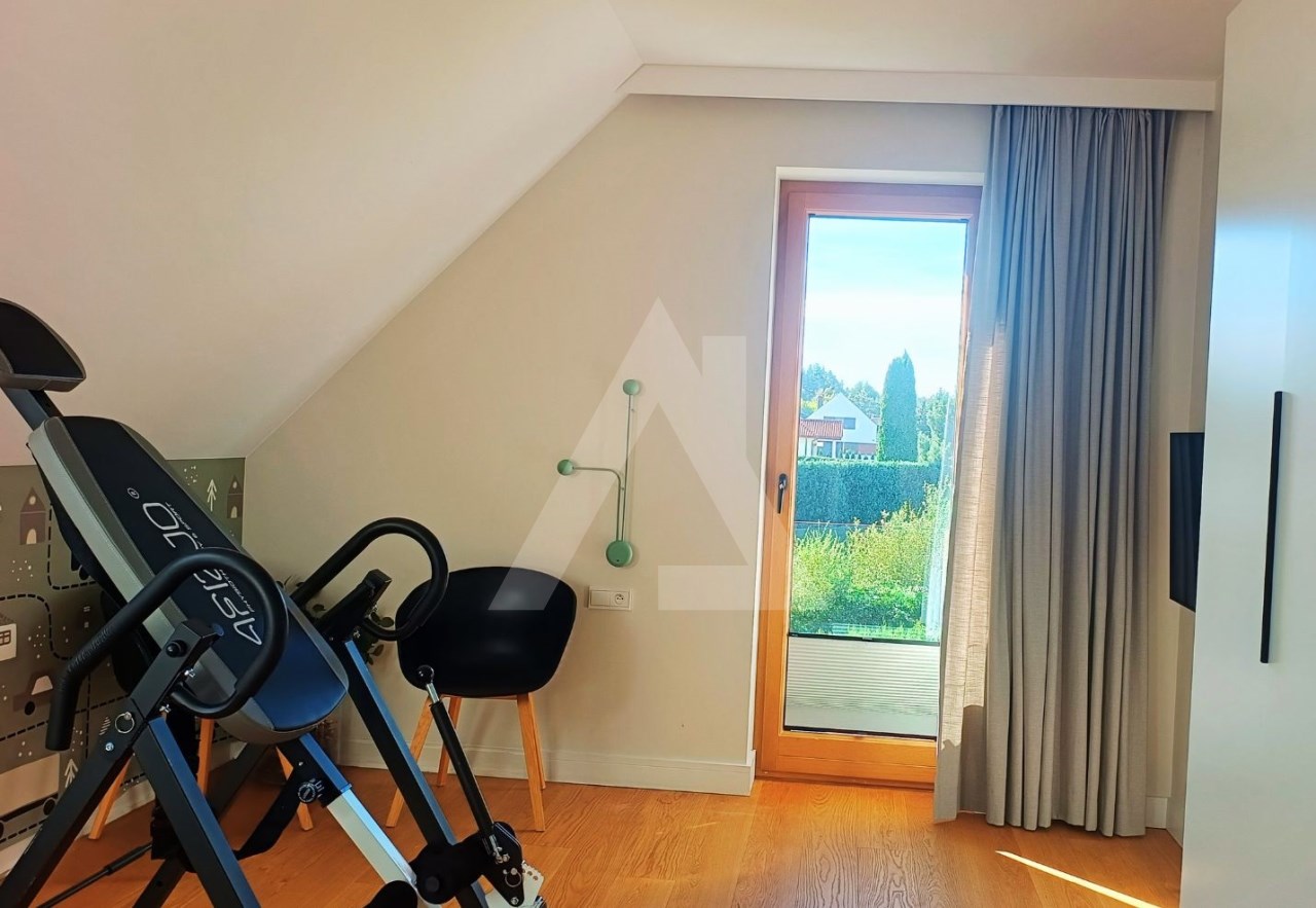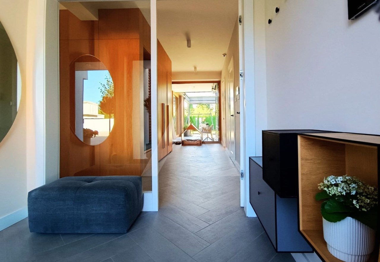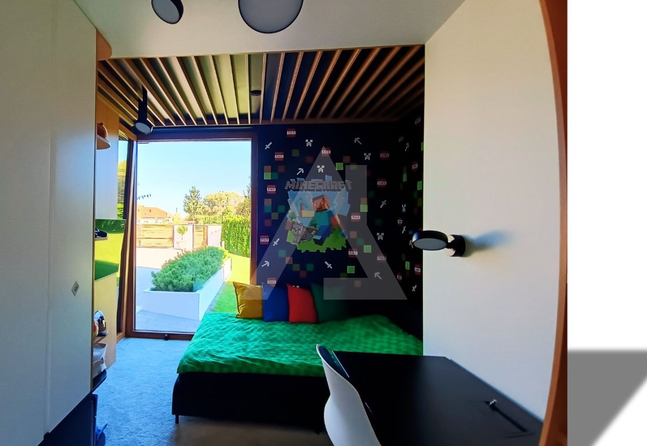 Nieruchomość wyposażona w inteligentny system Grenton, który umożliwia sterowanie oświetleniem, żaluzjami, bramami, pergolami oraz monitoringiem.