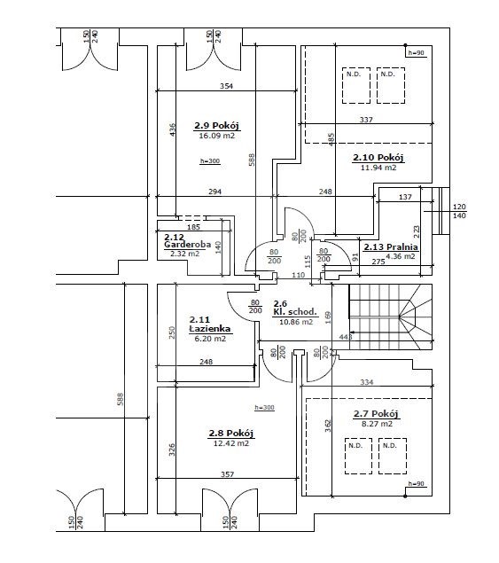 Cztery sypialnie, łazienka razem z WC, garderoba oraz pralnia.