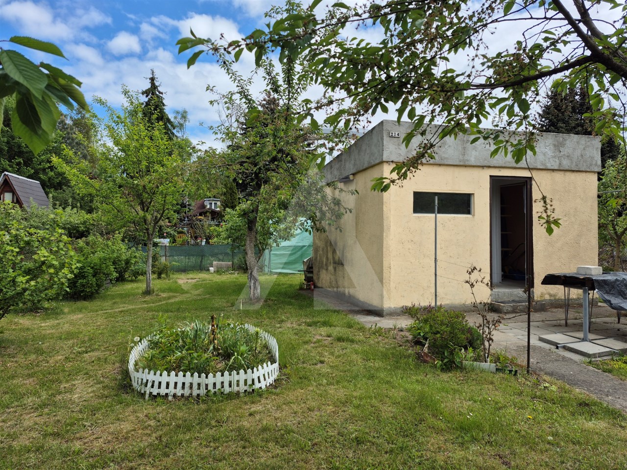 Na działce znajduje się murowany domek letniskowy o wymiarach zewnętrznych 4,5x4 oraz szklarnia foliowa.