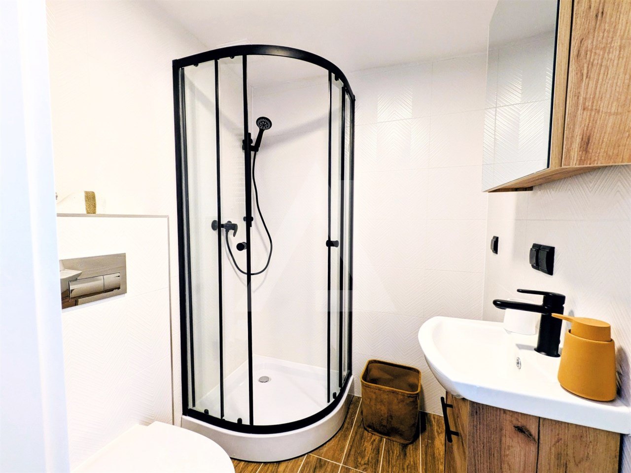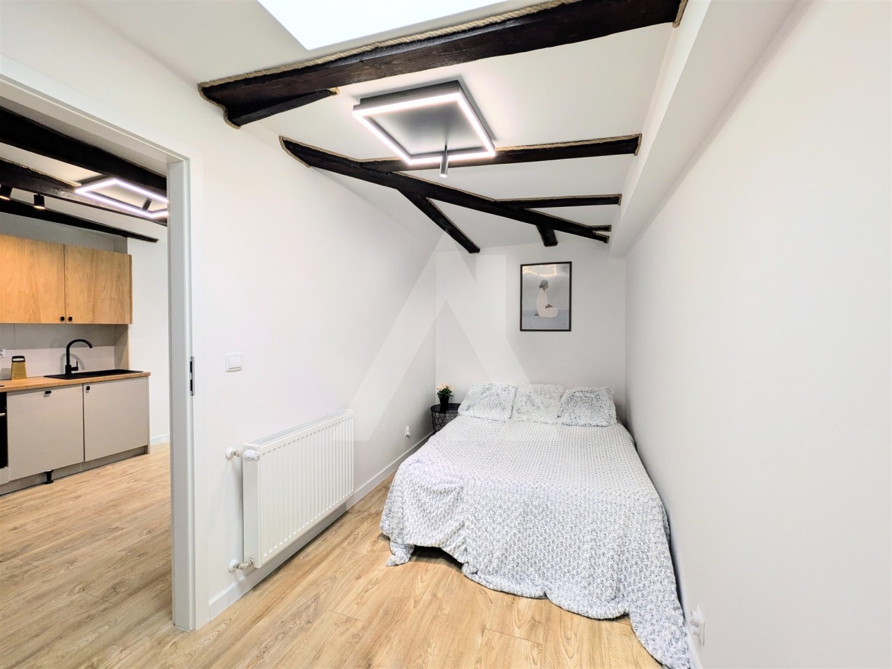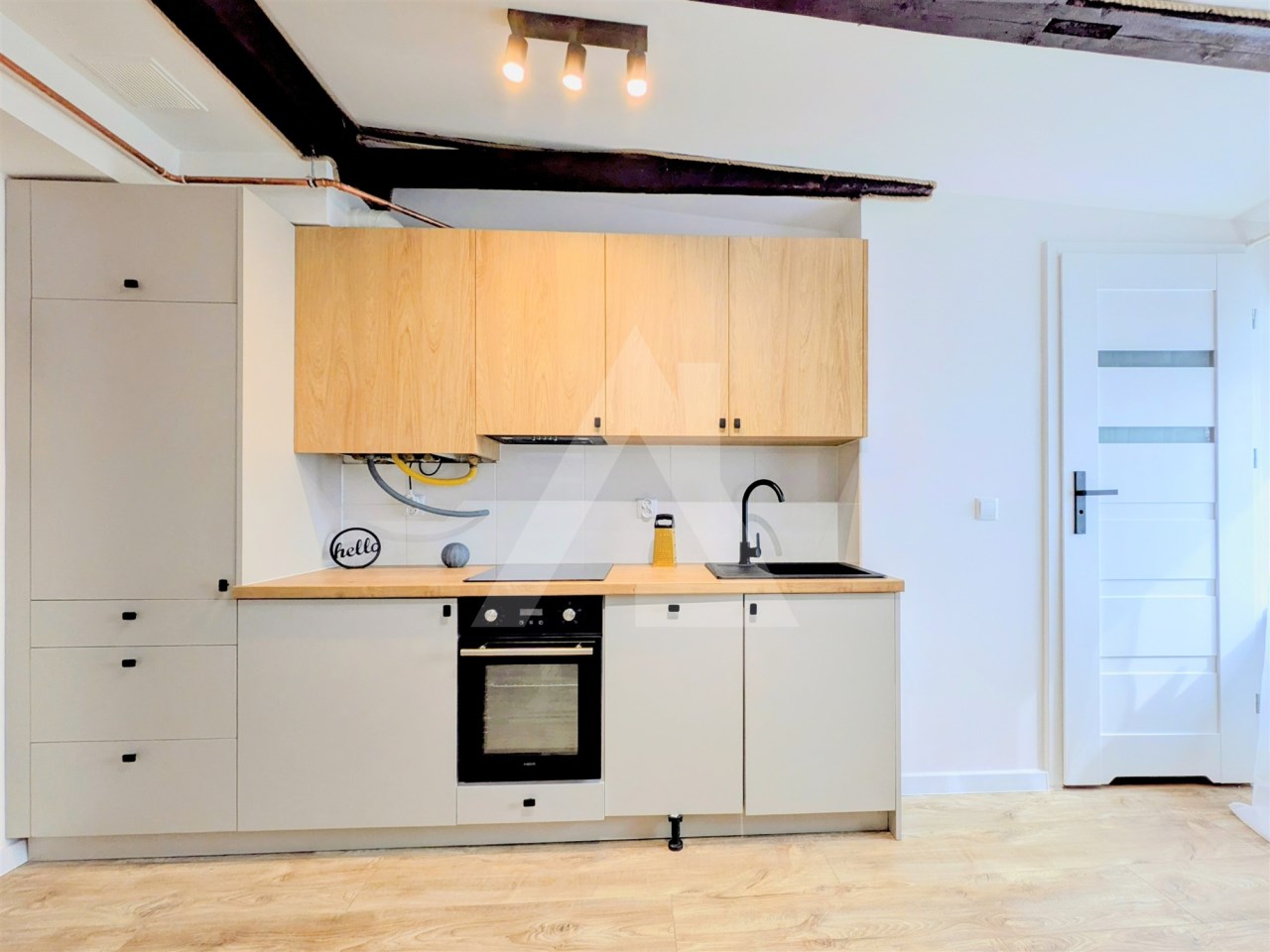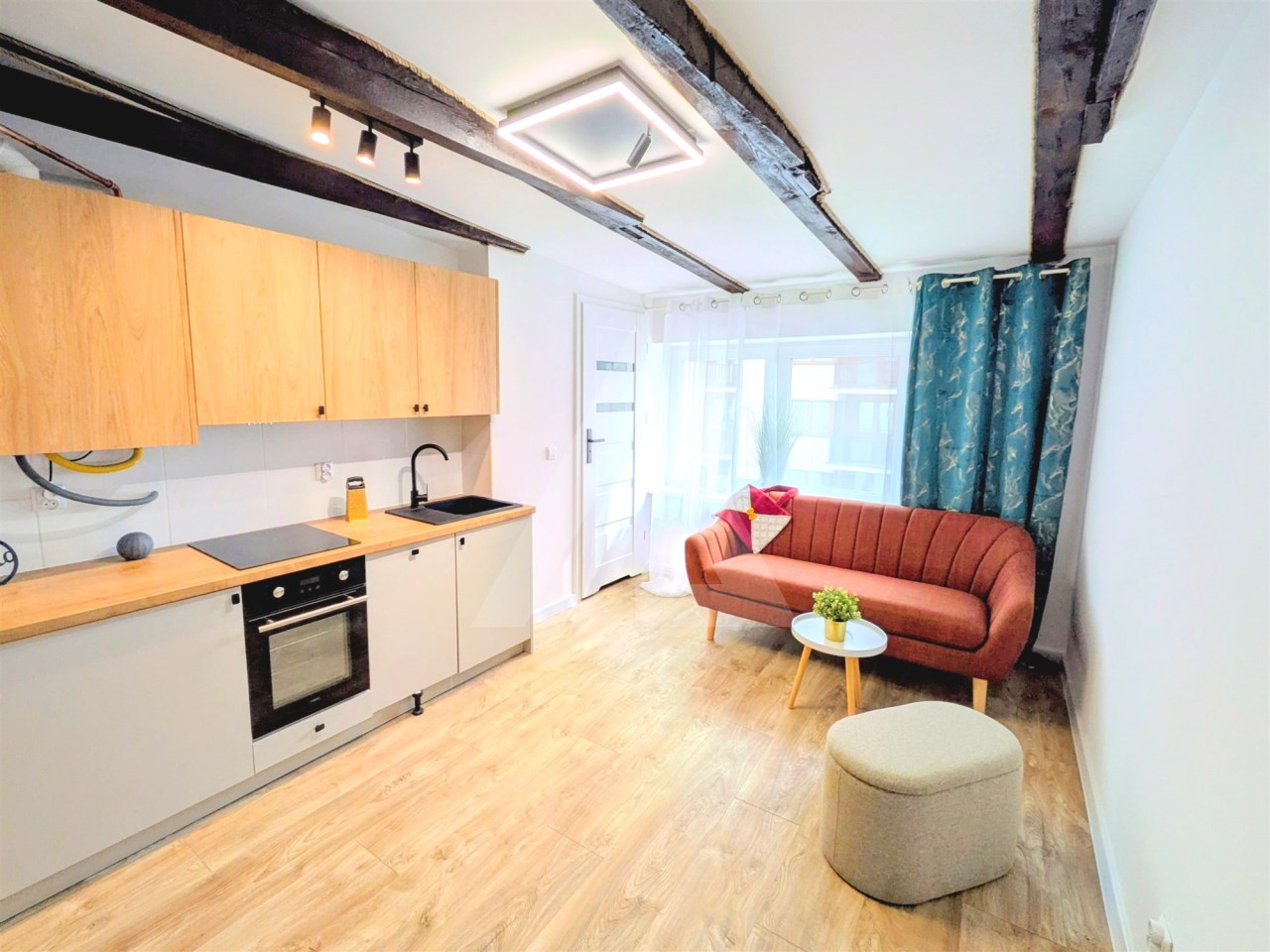 Mieszkanie gotowe do zamieszkania „od zaraz” – jasne, nowoczesne i utrzymane w ciepłym, skandynawsko-rustykalnym stylu z pięknymi, oryginalnymi ciemnymi belkami na suficie. Sprzedawane z meblami i pełnym wyposażeniem AGD. Do mieszkania przynależy prywatne miejsce parkingowe na zamkniętym terenie oraz piwnica.