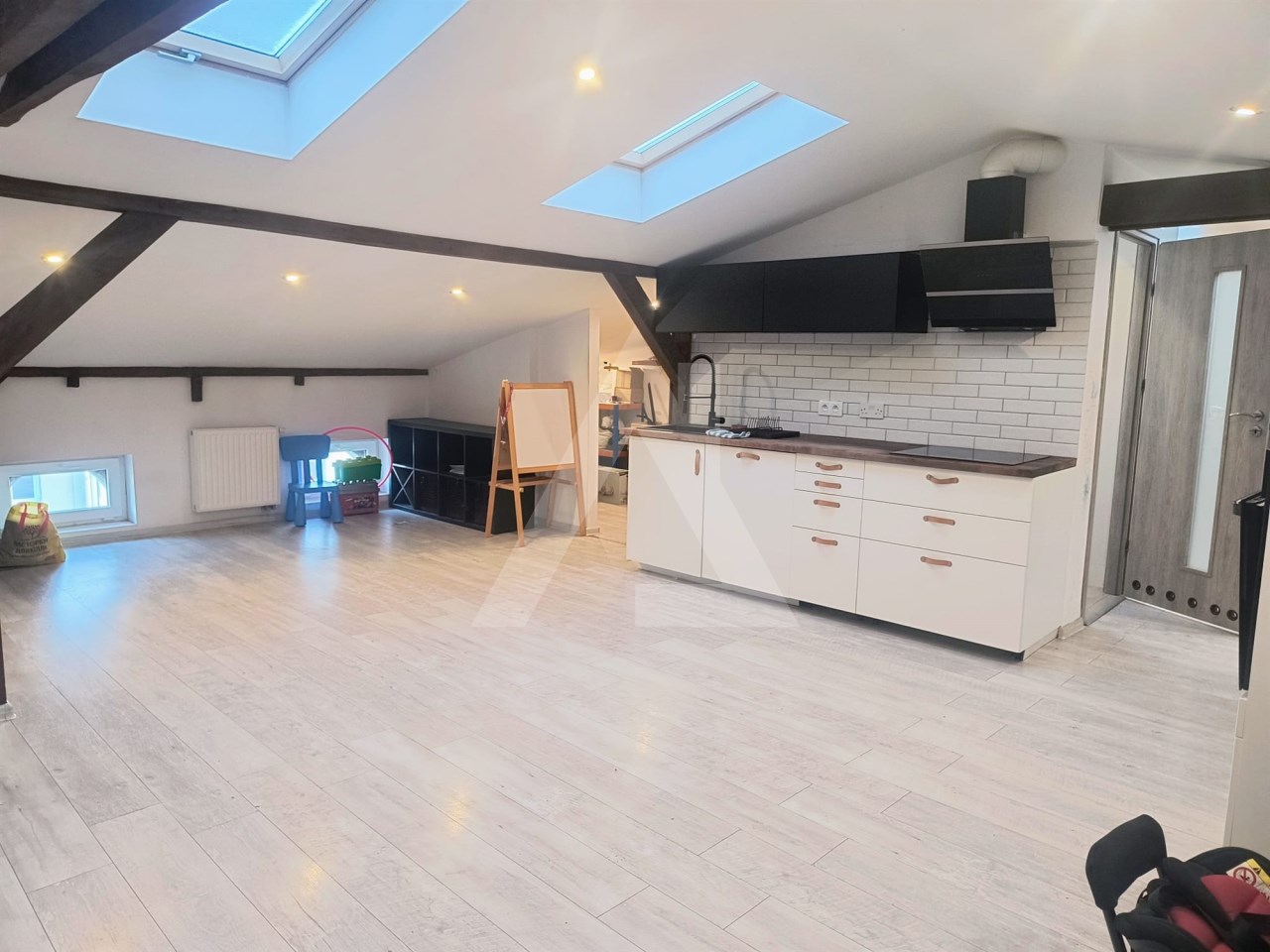 Mieszkanie jest jasne, przestronne i bardzo dobrze doświetlone dzięki oknom dachowym typu Velux.