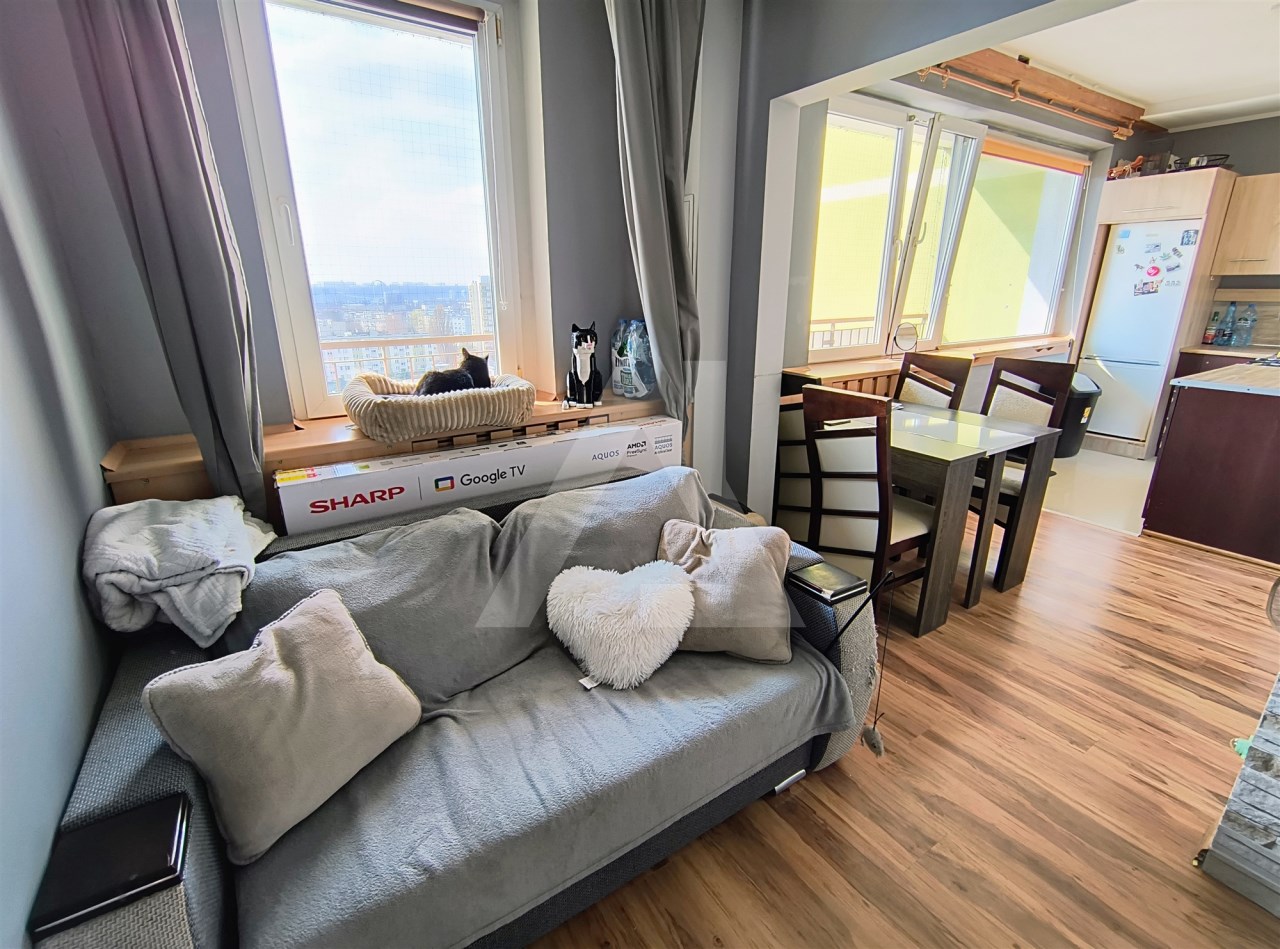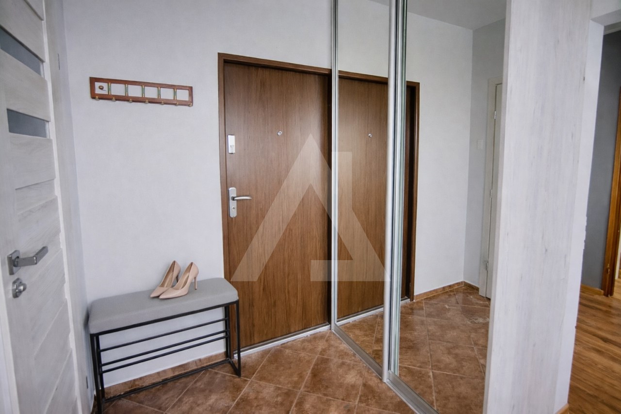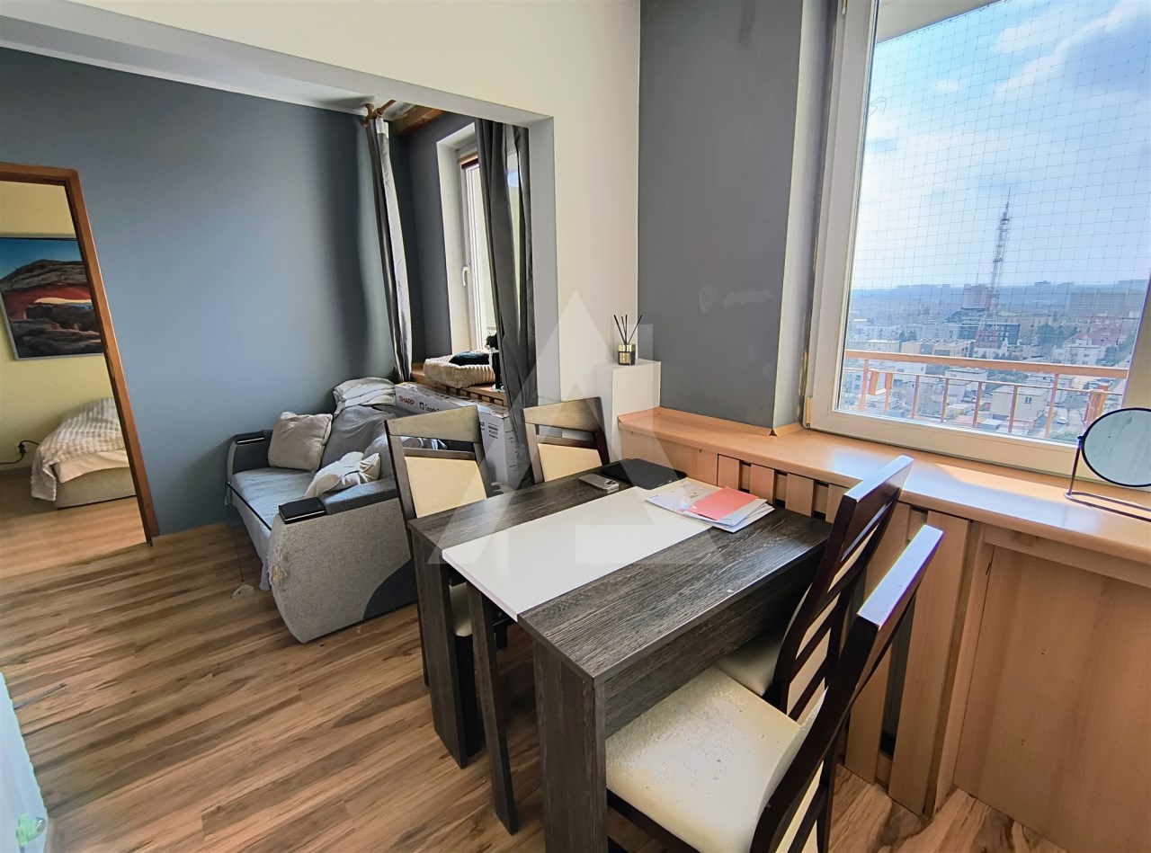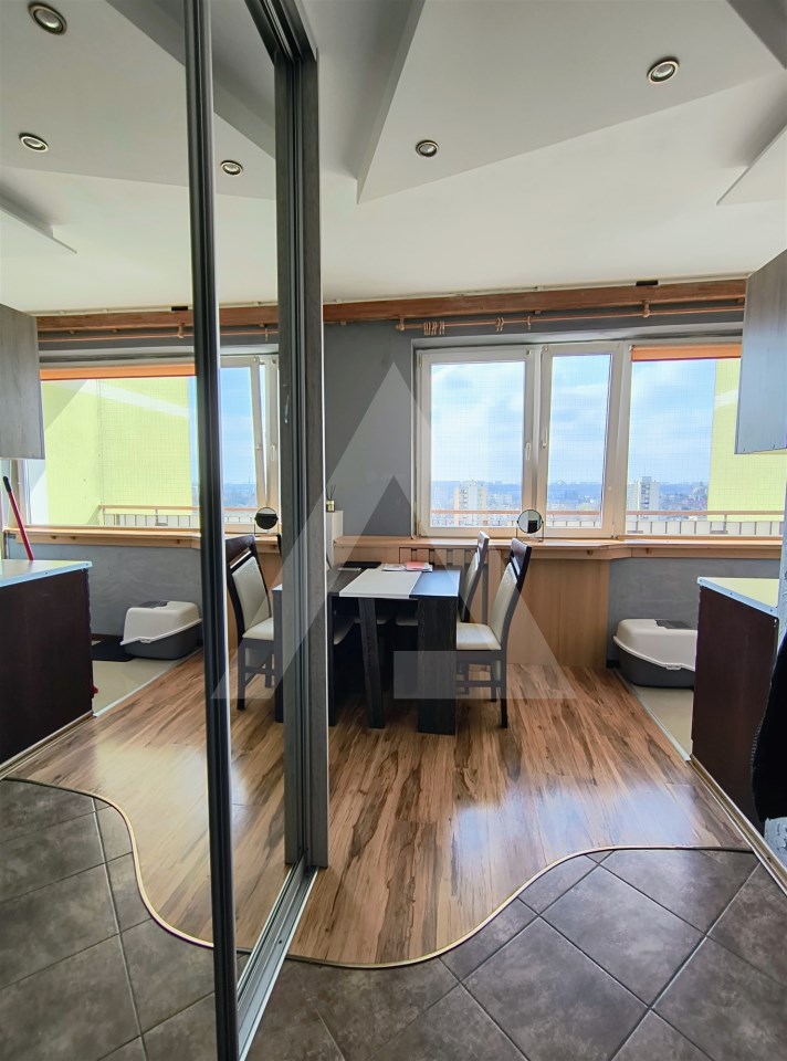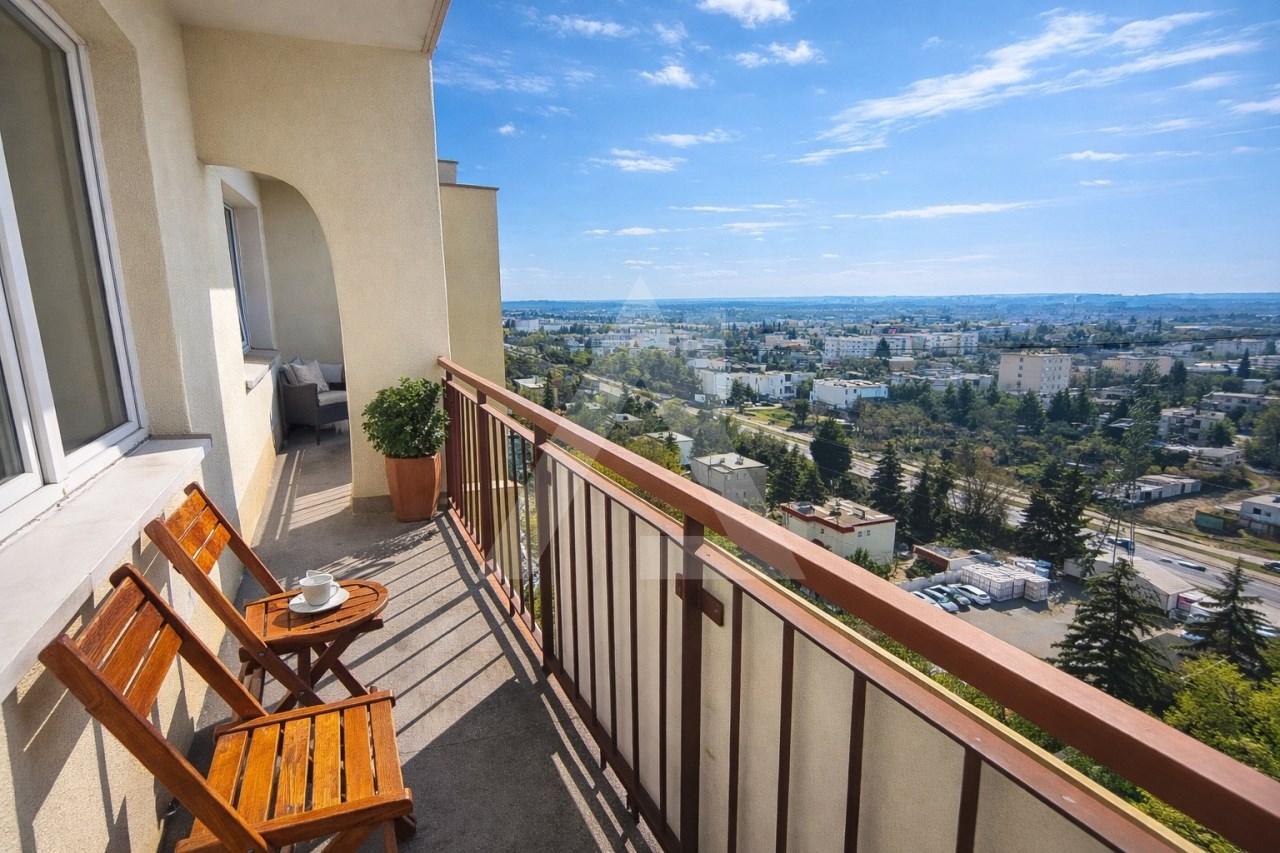 Nieruchomość wyróżnia się ogromną loggią na szerokość całego mieszkania, zabezpieczoną siatką, z której rozpościera się przepiękny widok na panoramę miasta.