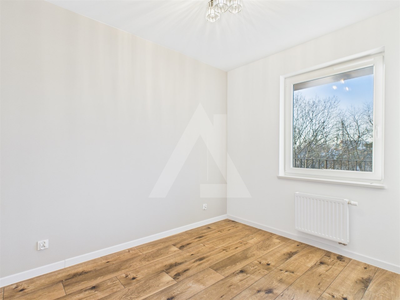 Duże okna oraz loggia z widokiem na zieleń zapewniają doskonałe doświetlenie i poczucie prywatności.
