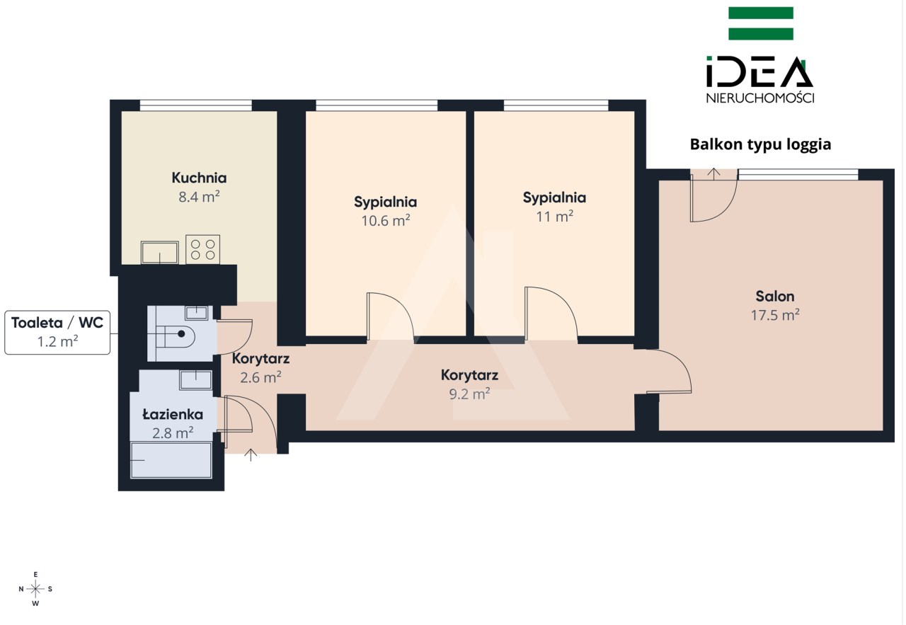 Mieszkanie składa się z jasnego salonu, dwóch niezależnych sypialni, kuchni, łazienki, osobnego WC oraz przedpokoju z pojemną zabudowaną szafą. Dodatkowym atutem jest piwnica o powierzchni 3,80 m² oraz balkon typu loggia.