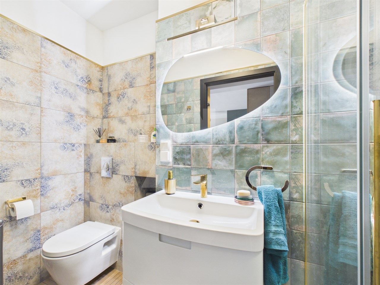 Mieszkanie wykończone w bardzo wysokim standardzie, z użyciem materiałów wysokiej jakości.