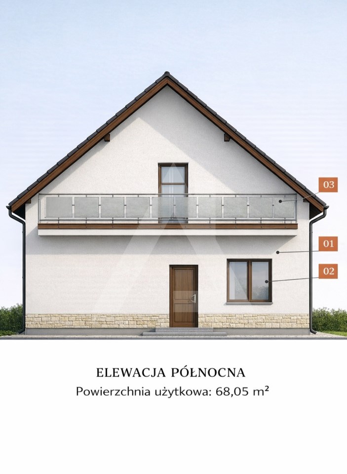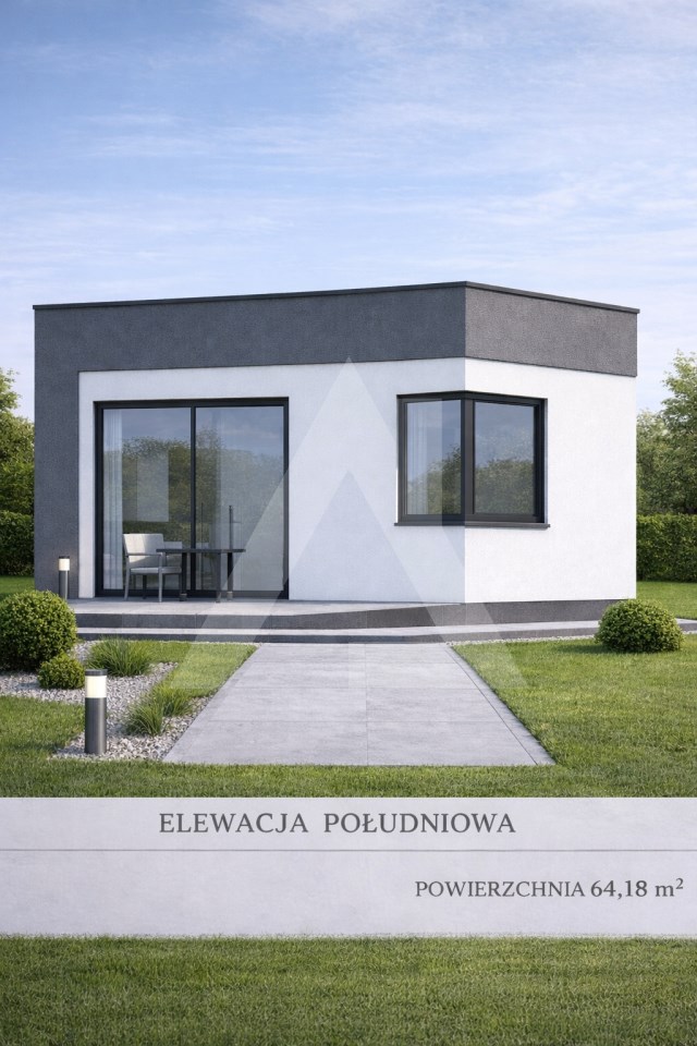 Budynek nr 2: 68,05 mkw ( wizualizacja obu budynków w ogłoszeniu).